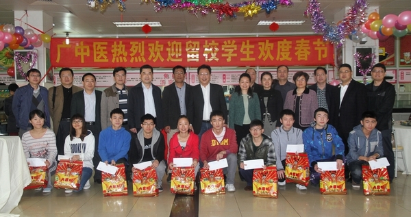 团年宴上,陈英华发表了热情洋溢的新春致辞,代表学校向留校过年的同学们送上节日的问候和新春的祝福,祝愿同学们新年快乐、学业进步、身体健康!并强调假期要注意安全,过一个祥和平安的春节。陈英华还为留校生活困难学生代表派送了节日慰问金,学校给每一位留校学生派送了节日礼包。整个现场喜气洋洋、其乐融融。寒假留校的同学们纷纷感谢学校领导和相关部门的老师春节期间放弃休息时间,专门陪大家欢度春节,感谢学校的精心安排,让远离家乡和父母的同学们在寒冷的冬天依然有家的温馨。