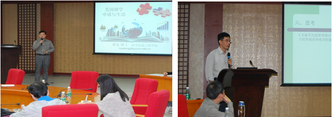 "出国之前最好先问自己能做什么?有何优势?""写好"套瓷信"(与教授建立良好联系的邮件)很重要" "外语是不可或缺的技能"……21日下午,在beat365官网归国留学人员论坛第1期讲座上,近两年学校选派出国(境)进修的教师曹东博士、富文俊博士侃侃而谈,与在座师生分享留学经历与心得体会。