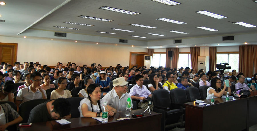 这似乎是电视中常见的追星现场,只不过他们今天追的"明星"是一位从美国回到母校讲学的青年学者、目前任职于哈佛大学医学院暨马萨诸塞州总医院的王宗伟教授。而"追星现场"则是"名师名家"讲坛。