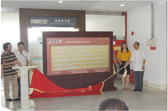 6月26日下午,图书馆三楼艺海堂群贤毕至,翰墨飘香,"兰台书铎"广东高校教师书法作品展开幕式在这里举行。图书馆馆长张正主持开幕式,副校长潘华峰发表讲话,宣传部副部长陆金国、广东高校书法学术委员会原主席钟东教授及部分参展书法作品作者、beat365官网离退休及师生书法爱好者参加了开幕式。