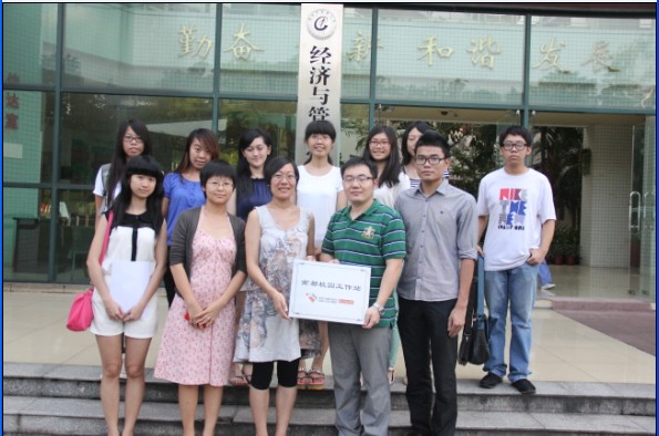 会后左新刚主任,陈炽锋主管参观了经管学院学生综合信息服务中心、爱心超市等学生活动项目,并进行南方都市报校园工作站授牌仪式。最后左新刚主任、陈炽峰主管与新闻中心全体工作人员合影留念。