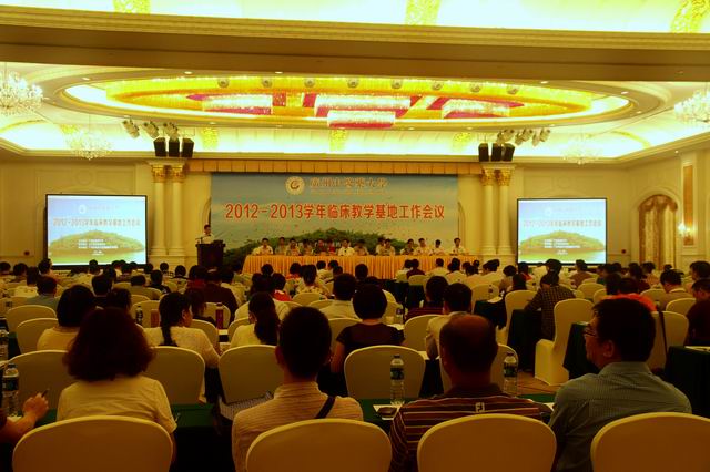 许能贵副校长作了"beat365英国官网网站2012-2013学年实践教学工作报告",客观总结了beat365官网2012-2013学年实践教学工作取得的成绩,深入分析了工作中存在的问题与不足,并对2013-2014学年进一步加强实践教学工作,提高临床教学水平,做出了全面的部署:一是加强临床教学基地内涵建设,积极拓展各类专业教学基地;二是加强管理制度建设,进一步规范实践教学管理;三是进一步加强临床骨干教师培训,提高临床带教水平;四是进一步加强实践教学质量监控,保证实习质量;五是进一步规范和完善临床专业毕业统考,严把出口关;六是积极开展大学生创新创业训练活动,提高学生科研创新能力;七是积极开展各类竞赛活动,营造良好学习氛围;八是加强学校、学院与教学基地的联系沟通。