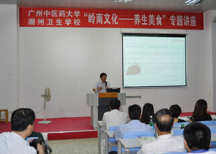 5月30日下午孙晓生副校长还在潮州卫生学校向该校师生员工进行了"岭南文化-养生美食"专题讲座。