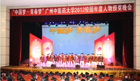 5月9日晚,"中国梦•青春梦" 2012校园年度人物颁奖晚会在大学城校区大会堂隆重举行。校党委陈英华副书记,党办、校办、组织部、学生处、工会、团委、研究生处、财务处等职能部门领导和二级学院分管学生工作领导出席了本次晚会。