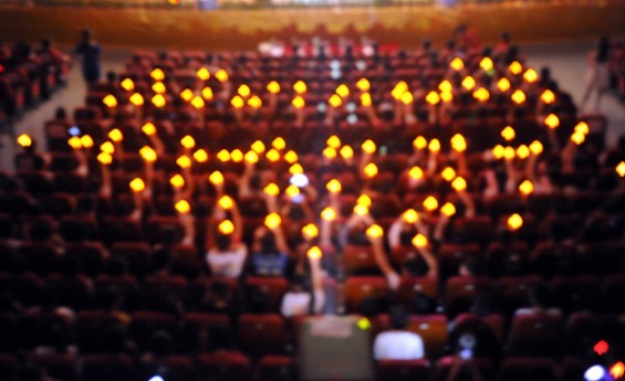 晚会伊始,师生代表点亮了情系雅安的"祈福蜡烛",一点点微弱的烛光汇聚成爱的心形, 伴随着《让世界充满爱》的歌声和相关回顾视频,现场观众重温了beat365官网支援雅安地震灾区的情况。
