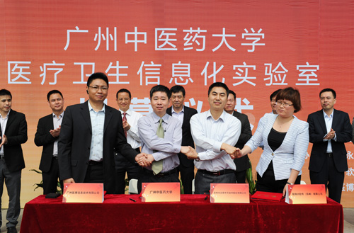 黄斌书记讲话指出医疗卫生信息化实验室的建设是校企合作的新成果,是新形势下推进高等教育科学发展,创新人才培养模式,实现产学研紧密结合,深化教学改革,提高人才培养质量的重要举措,标志着校企合作迈向一个新台阶,推动校企协同创新向更高层次发展。同时要充分发挥学校的优质资源,通过与深圳市永泰中天软件股份有限公司、先特计软件(苏州)有限公司、广州医博信息技术有限公司三家企业的合作,创立高校与企业联合培养人才的新机制,相互学习,相互借鉴,取长补短,充分利用医疗卫生信息化实验室平台,将信息技术与医药相结合,利用信息技术助力传承中医药事业的蓬勃发展,为广东建设中医药强省培养更多优秀人才。