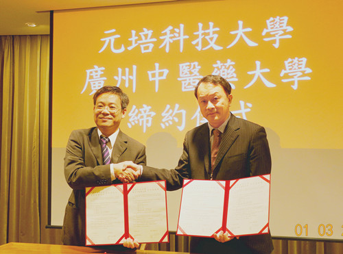 3月1日,校长王省良、副校长许能贵及港澳台事务办公室主任王洪琦应邀赴台湾元培大学访问,元培大学校长林志城、副校长蔡世杰及执行董事蔡雅贤等热忱欢迎,两校通过友好商谈,就双方开展学术交流、学生交换及教师交流等方面达成合作意向,双方校长签署了合作协议。