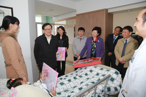 华建敏副委员长到心脏科病房看望正在接受治疗的先心患儿