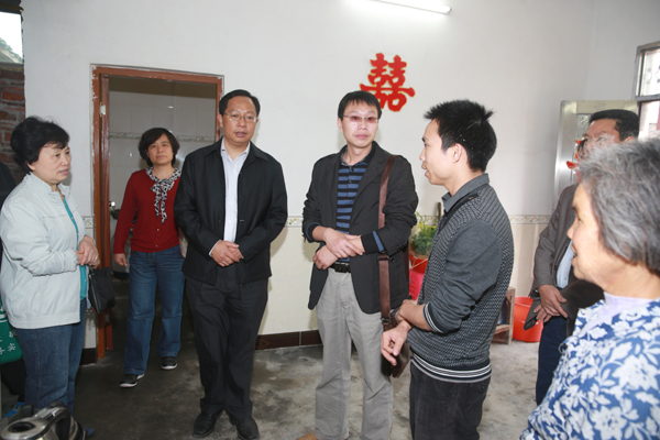 二附院翟理祥书记和黄慧玲、张广清副书记等人到年底搬进新建楼房居住的唐新雄一家探访