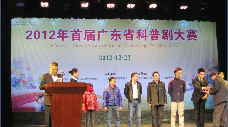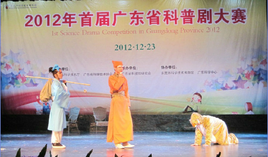 12月23日,广东省首届科普剧大赛在东莞科技馆隆重举行。广东中医药博物馆表演剧目——"一代药王孙思邈"获得科普场馆组三等奖。表演的剧目选择了药王孙思邈作为载体,以轻松诙谐的风格,以还原传说为手段,其间穿插科普以及养生知识,展示了中医文化神奇而浪漫的一面。全剧从神话传说、药王医病、推广保健三个方面,展现了一代药王孙思邈高尚的医德和高超的医术。演员们以饱满的热情和精湛的演技赢得了评委及观众的一致好评。