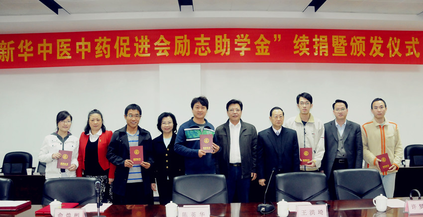 12月18日下午,"香港新华中医中药促进会励志助学金"颁发仪式在大学城校区举行。党委副书记陈英华、香港新华中医中药促进会俞焕彬会长等领导和嘉宾出席了仪式,并为30名励志助学金获得者颁发了证书。