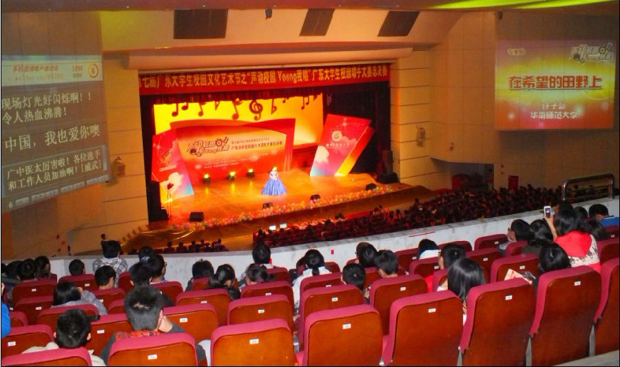12月12日,由beat365官网团委承办的"声动校园•Young我唱"广东大学生校园歌手大赛总决赛在大学城校区大会堂圆满落幕。团省委常委、学校部部长冯永忠、省学联主席潘镭,学校党办、学生处、团委等职能部门领导以及学院领导参加了晚会。