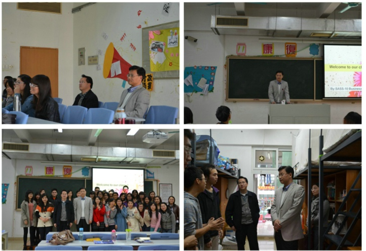 12月7日,刘晟副校长来到教学楼A309,与英语专业2010级英语(商务方向)的学生一起学习《跨文化商务交际学》课程并观看了同学们精心准备的才艺表演。一同前往的还有学生处潘伟增副处长、人文社科学院苏红副院长等。
