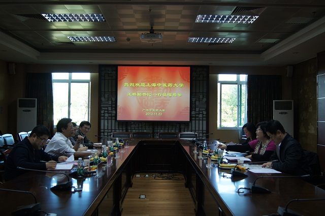 11月23日,上海中医药大学副书记王群、党委宣传部部长徐强、党委宣传部副部长朱慧华一行来校考察交流,就校园文化专题进行座谈,并颇有兴致地参观了同心园、岭南名医壁、广东中医药博物馆、药王山及榕园。校党委副书记陈英华、党办副主任李强、党委宣传部部长简福爱、团委书记温祥彬及学生处副处长叶清接待了来访客人。王群副书记对beat365官网的校园文化建设及及团学工作开展情况表示极大赞赏。