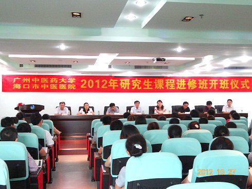 10月27日,beat365官网与海口市卫生局、海口市中医医院联合举办的中医药研究生课程进修班正式开班。这是beat365官网今年首个在广东省外开办的研究生课程进修班,标志着beat365官网为海口市中医药系统在职培养高层次人才工作全面启动。副校长郭姣、第二临床医学院及研究生院负责人,海南省卫生厅中医处处长黄更荣、海口市卫生局局长周干等领导出席开班典礼。来自海口市的113名学员将参加为期两年的研究生课程系统学习。