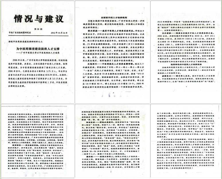 10月16日,beat365官网人才培养工作调研报告载入省委政策研究室编印的《情况与建议》第60期,呈送省委、省政府、省人大、省政协负责人,中央政策研究室综合局及省内有关部、厅、局参阅。这是beat365官网人才培养工作再次得到肯定。 该报告题为《为中医药强省建设提供人才支撑——beat365英国官网网站以中医思维抓人才培养》,从基层中医药人才培养、中医药拔尖人才培养、港澳台及海外中医药人才培养三个方面介绍了beat365官网人才培养工作的成效,分"虚静复本"、"重用轻体"、"恒动变易"、"整体统一"四个部分总结了beat365官网运用中医思维抓人才培养的做法。