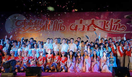 9月28日晚,由校团委、校学生会、校研究生会、社团联合会、校艺术团主办,各学院团委、学生会、各社团协办的"梦想起航·青春飞扬"beat365英国官网网站2012迎新生文艺汇演暨中秋国庆游园会在大学城校区生活区举行。校党委黄斌书记、陈英华副书记,党办、校办、组织部、学工部、工会、团委、教务处、研究生处等职能部门领导,各二级学院分管学生工作的领导与全体新生共3000余人一同观看了演出。