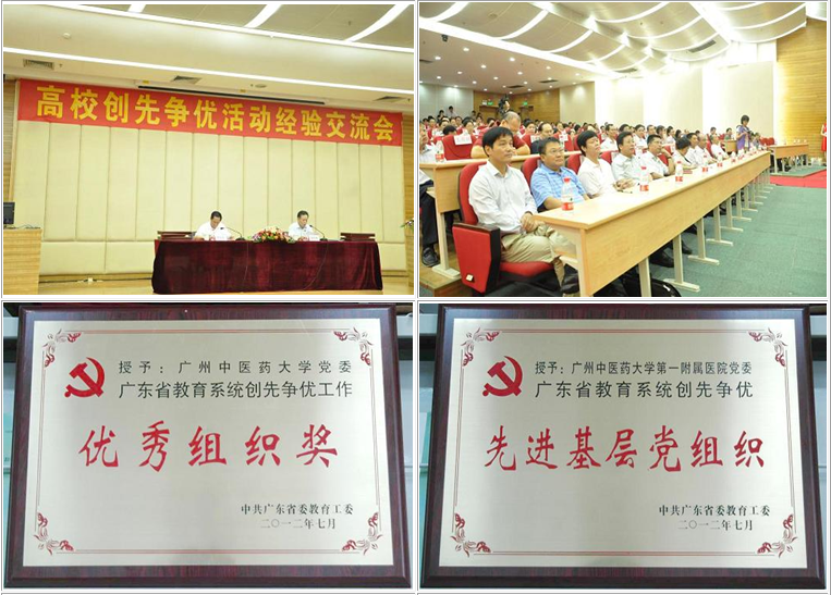会议开始,景李虎副书记宣读了《广东省委教育工委关于表彰全省教育系统创先争优先进基层党组织和优秀共产党员的决定》,并对获奖单位及个人给予表彰。在本次表彰中,beat365官网党委获"广东省教育系统创先争优工作优秀组织奖",第一附属医院党委、直属学工部团委党支部获"广东省教育系统创先争优先进基层党组织"荣誉称号,第二附属医院党委副书记、副院长、纪委书记、工会主席黄慧玲同志,学校驻村干部中药学院喻良文同志,经济与管理学院学工办主任、副处级辅导员张娟等三位同志获"广东省教育系统创先争优优秀共产党员"称号。党委组织部陈文锋部长代表学校的获奖单位和个人接受颁奖。