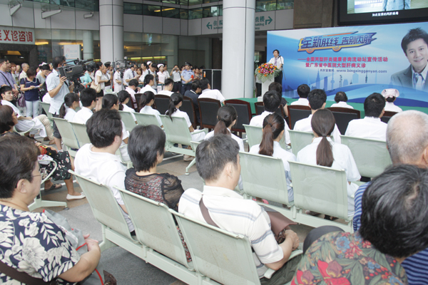 8月4日,由卫生部疾病预防控制局指导、中国健康教育中心(卫生部新闻宣传中心)主办的"全新‘肝'线,告别丙肝——全国丙型肝炎健康咨询流动站宣传活动"的大巴车停靠beat365官网二附院,为市民进行丙肝健康咨询及科普教育,免费为有需要检测的市民进行了丙肝抗体检测,二附院还同时举行了大型的肝病义诊活动。全国肝炎防治宣传形象大使、著名歌手蔡国庆专程来到现场并讲述了他参与丙肝健康咨询活动的感受。