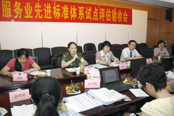 验收组一行在检查资料、现场验收后,对二附院(广东省中医院)现代服务试点工作给予了高度评价,认为广东省中医院将标准化理念与医院服务实际相结合,积极探索和创新医院服务标准化工作,试点组织管理有效、扎实;建立了一整套符合国家标准相关要求和本单位实际的服务标准体系,获得创建"标准化良好行为企业" AAAA等级的确认;并在此基础上进一步强化先进标准体系的建设,制定和完善了一大批医院服务提供标准并有效实施,标准体系构成合理、结构完整,体系文件完备、规范,体系内标准制定科学、协调配套,操作性强;在医院门诊服务程序、临床路径、临床检验、医院顾客满意度测评等方面制定的标准具有先进性,填补了国内空白;积极采用国际标准,并在国内率先通过ISO 15189:2007实验室认可;通过开展深入细致的标准实施工作,产生了良好效果,病人综合满意度达到96%,医院年均服务量增长12%,病人费用年均增长率得到有效控制,医院品牌和知名度不断提升,充分显示了先进标准体系在提高医院服务质量的作用,对全省同行业标准化工作的开展起到了良好的示范和带动作用。广东省中医院圆满完成了试点工作的各项任务,评估验收得分 96 分,顺利通过了现代服务试点工作的验收。