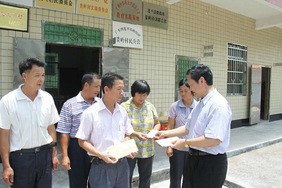 7月11日,党委书记黄斌率队前往beat365官网扶贫开发"规划到户责任到人"对口帮扶村---河源市连平县隆街镇贵岭村,针对"扶贫双到"工作开展调研慰问活动,同时为beat365官网资助援建的村道——"大学路"顺利完工并投入使用剪彩。