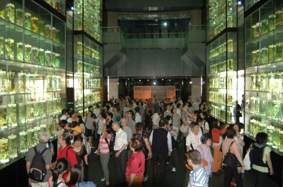 7月8日下午,600余位香港中医药界人士来到广东中医药博物馆参观考察。 本次活动由香港中医药界庆祝回归15周年筹备委员会主办,香港各大中医药团体代表参加,目的在于了解我省中医药强省建设及交流粤港两地中医药合作策略。活动得到了中央政府驻港联络办协调部、广东省中医药局、广东省港澳办的全力支持。 由600瓶液浸标本构建的高达15米的标本墙令香港中医药界同仁们啧啧称赞,几千件珍藏的中医药文物和解说队员们激情洋溢的解说给他们留下了深刻的印象。紧凑的行程安排只有短短一个小时的参观时间,他们在意犹未尽之余纷纷表示以后有机会一定与其他同仁再次前来。