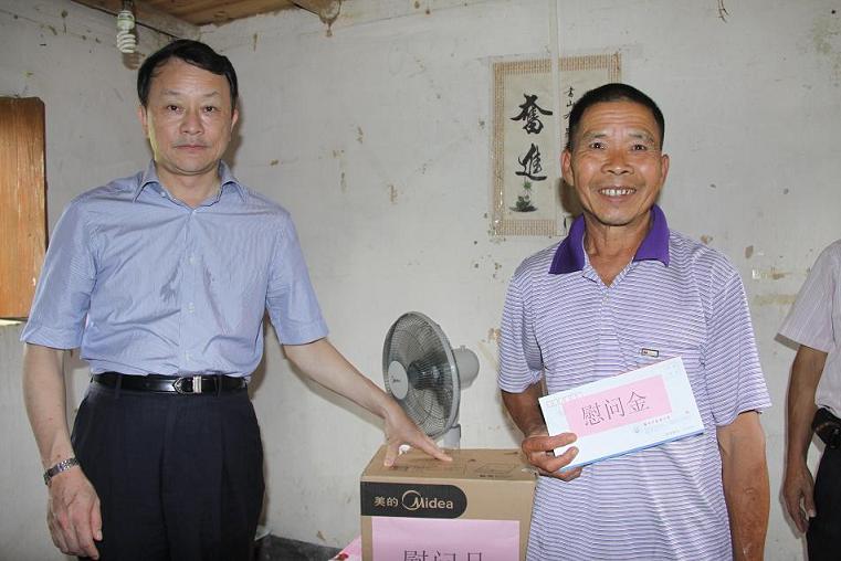 6月12日,校长王省良、副校长许能贵率领直属校办(三元里校区综合办)党支部、外事处(国际学院)党支部、党委组织部、财务处等部门同志合共十余人赴beat365官网扶贫开发"规划到户责任到人"对口帮扶点——贵岭村调研,指导检查扶贫开发"双到"工作,并对贵岭村的困难党员干部群众进行走访慰问。