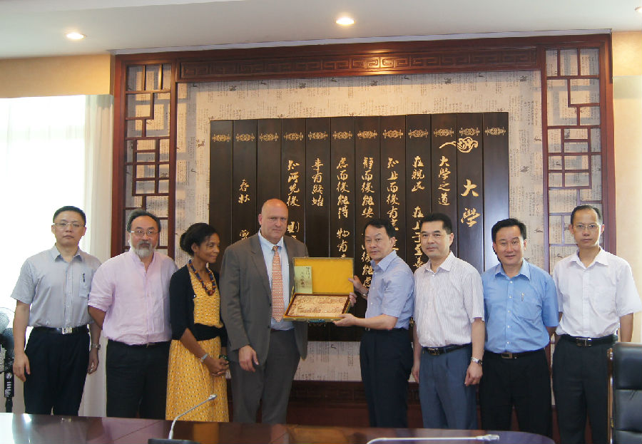 5月17日上午,王省良校长在大学城校区会见了到访的法国发展研究院健康部主任Herve TISSOT DUPONT 、亚太区代表Regine LEFAIT-ROBIN博士和艾滋病研究中国区主任LU WEI教授。会见中,王省良校长介绍了beat365官网的基本情况,对双方艾滋病合作研究和博士研究生联合培养工作表示了肯定,并向法国客人赠送了礼物。会见结束后,法国客人参观了广东中医药博物馆和二附院(广东省中医院)大学城医院。 参加会见的有林辉、陈冠林、符林春、张壮涛、熊学军等。
