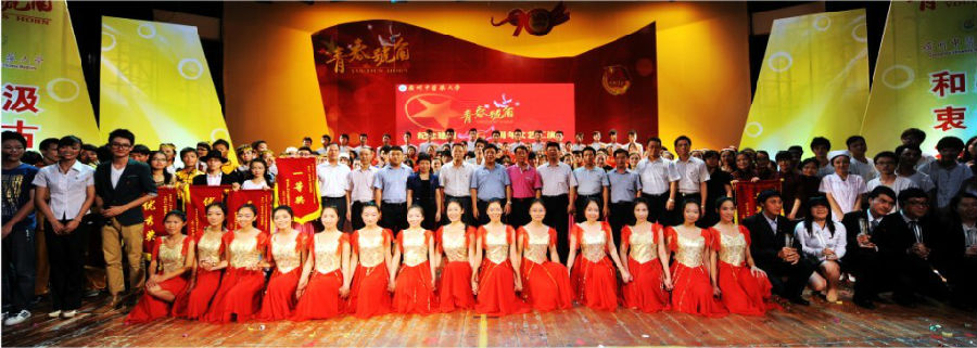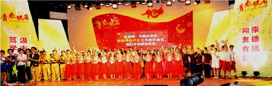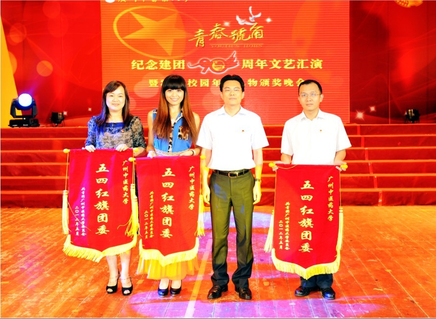 5月11日晚,"青春号角"beat365官网纪念建团90周年文艺汇演暨2011校园年度人物颁奖晚会在大学城校区大会堂隆重举行。共青团广东省委副书记陈宏宇,共青团广东省委常委、学校部部长冯永忠,beat365官网党委副书记陈英华,以及学校党委办公室、校长办公室、组织部、学生处、团委、人事处、教务处等职能部门领导和二级学院学生工作负责人出席了本次晚会。