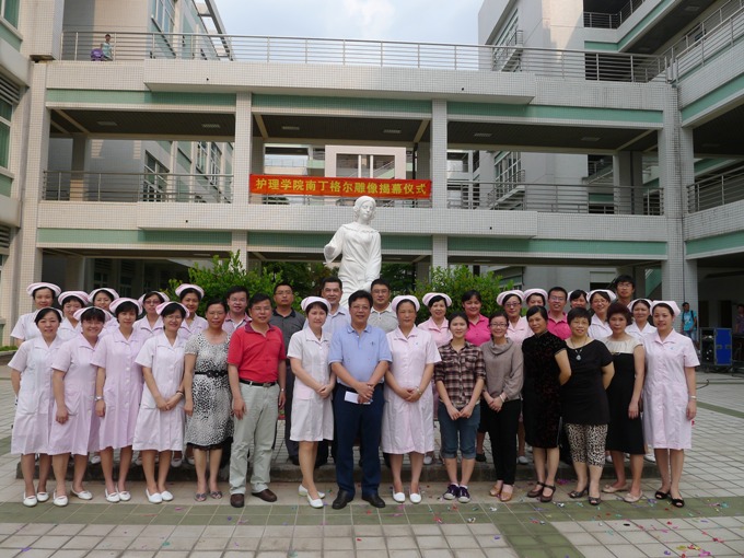 5月10日,在国际护士节100周年纪念日即将来临之际,南丁格尔雕像揭幕仪式暨校友捐赠仪式在大学城校区护理楼举行。学校党委副书记陈英华、护理学院党委书记谭少明、院长李伊为和护理校友代表共同为雕像揭幕,校办主任林辉、党办副主任李强、宣传部部长简福爱、团委书记温祥彬,beat365官网81级护士班校友代表、第一和第二附属医院护理校友代表,以及护理学院全体教职工和部分学生参加了揭幕仪式。