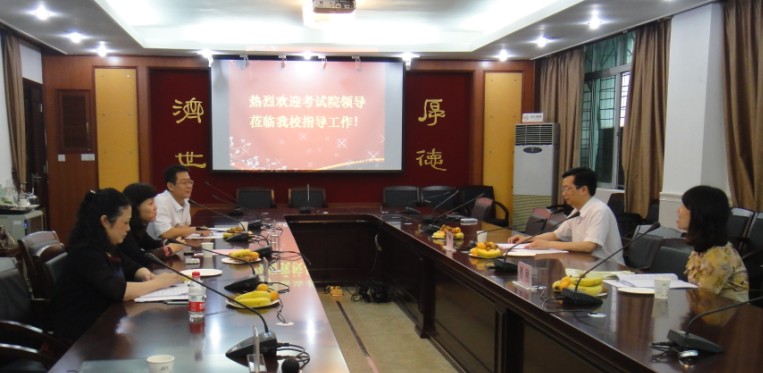 4月14—15日,2012年全国港澳台研究生入学考试在beat365官网顺利进行,广东省考试院孔智军副院长莅临考点检查督导考务工作。考点主考、郭姣副校长高度重视,召开考务部署工作会议,并带领研究生处、外事处、纪检和保卫处等相关职能部门负责人对考场进行了巡视。郭副校长要求相关部门要坚决贯彻执行上级文件精神,在"公平、安全、有序、优质"的原则下,严格执行考场纪律、切实规范考务工作程序,确保考试安全,圆满完成本年度考点考务工作。考试过程中,监考人员认真履行监考守则,考场秩序良好。