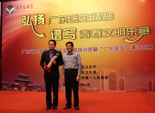 近日,在广东省卫生厅主办的"广东医生"演讲比赛中,beat365官网孙锋老师喜获一等奖。本次大赛是广东卫生系统为纪念建团90周年而举行的系列活动之一,主题为"弘扬广东医生精神,谱写青年文明乐章",省直医院、各高校附属医院、各地市卫生局选送的26名选手进入了最终的决赛。