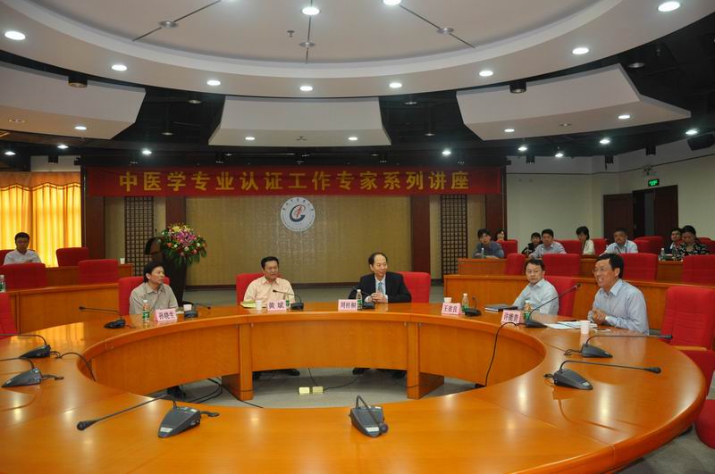 周桂桐教授从教育部对高等教育质量要求、国际医学教育标准化、中医药国际化和中医学自身发展的角度讲述了制定《中国•中医学本科教育标准》及开展专业认证工作的背景与轨迹,介绍了认证的基本概念与中医学认证试点工作程序;结合近几年中医学专业认证工作的开展情况,对本科中医学教育标准的指标体系进行了详尽地讲解,并指出专业认证工作是以专业考察为主体,以课程考核为重点,以教学水平提高为中心,注重过程、注重常态、注重内涵的建设。最后他强调,高校要通过专业认证工作,进一步牢固树立以学生为中心的教育理念,走内涵式发展的道路,加强专业内涵建设,全面提高教育教学质量。