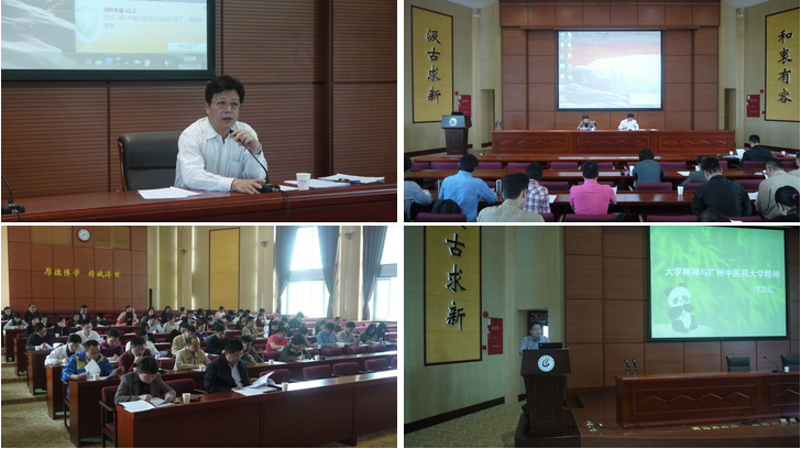 党委办公室主任邝卫红作了题为"大学精神与beat365英国官网网站精神"的专题演讲。邝主任从阐释大学精神的基本内涵和对高等学校科学发展的重要意义入手,具体介绍了beat365英国官网网站精神的凝练过程、基本特点和主要内涵,并就如何践行和弘扬广中医精神谈了自己的看法。指出必须纯洁大学的精神家园,注重科学精神与人文精神相互渗透、相互融合和相互促进,不断创新教育理念,树立国际视野和和谐理念。