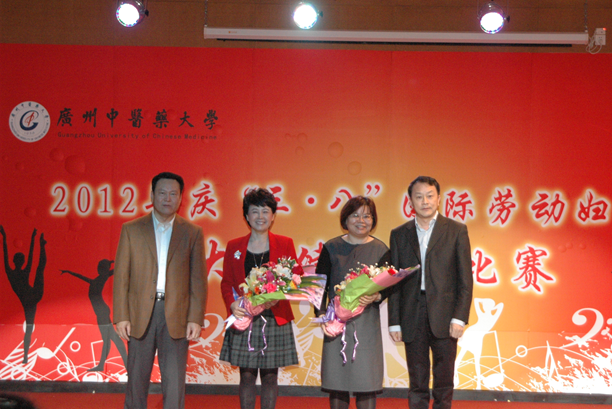 3月7日下午,校工会在大学城校区教工活动中心举行庆祝"三八"国际劳动妇女节大众健美操比赛,全校共有11支代表队参加了比赛。学校领导黄斌书记、王省良校长、孙晓生副书记、刘晟副校长亲临现场观看了比赛并为获奖队颁奖。黄斌书记致辞向学校全体女教职工致以节日的祝福,感谢广大女教职工长期以来为学校的改革、发展和稳定所做出的重要贡献,同时希望全校女教职工发扬成绩,再立新功。学校青年教职工代表向日前荣获"第四届羊城杰出女性"称号的李赛美教授和荣获"南粤女教职工建功立业女能手"称号的林丽珠教授献花,表达了大家对先进模范的敬意。