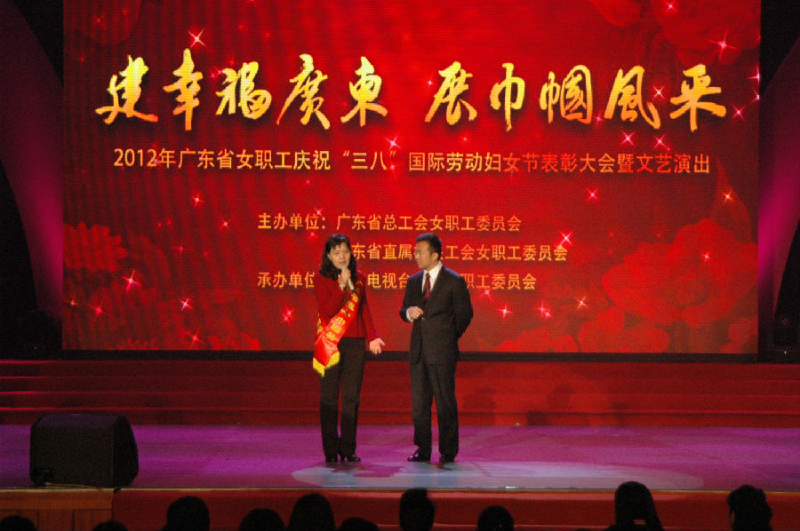 2月29日下午,由广东省总工会女职工委员会、广东省直属机关工会女职工委员会主办的2012年广东省女职工庆祝"三八"国际劳动妇女节表彰大会暨文艺演出在广州举行。