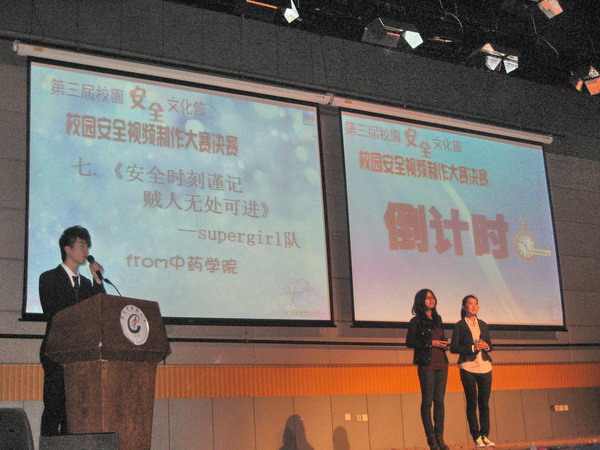 校园安全视频制作大赛是本届校园安全文化节的主打节目,入围决赛的8个作品从205个初赛作品中,通过层层选拔,脱颖而出。这些作品选题贴近校园生活,立意紧扣校园安全实际。经过激烈的角逐,中药学院的参赛队伍夺得了一等奖。