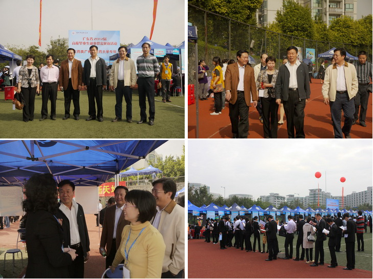 12月6日,广东省2012届高校毕业生就业供需见面活动(医药类专场)在beat365官网大学城校区举行。近200家省内外医药卫生系统的企事业单位和卫生行政部门前来参会,提供就业岗位共6200多个,岗位数比去年增加25%。来自全国医药卫生类院校约2万名应届本、专科及硕、博士毕业生参加了本场招聘会。广东省教育厅副巡视员、党组成员王玉学,省高校毕业生就业指导中心主任黄兆团,副调研员谢向军,学校领导黄斌、陈英华亲临现场指导工作。