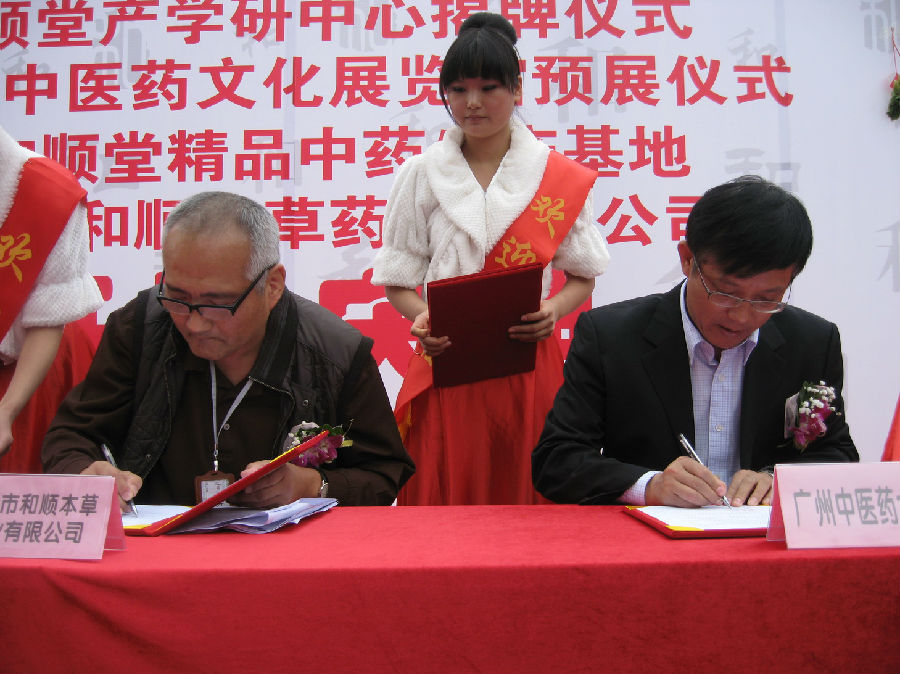 12月6日上午,beat365官网深圳市和顺本草药业有限公司教学基地签约和揭牌仪式在深圳市坪山新区和顺本草生产基地举行。许能贵副校长出席了签约和揭牌仪式,并代表学校与深圳市和顺本草药业有限公司签约。出席签约和揭牌仪式的有教务处王宏副处长,中药学院赖小平院长、陈雁书记、曾元儿副院长和部分教师代表。