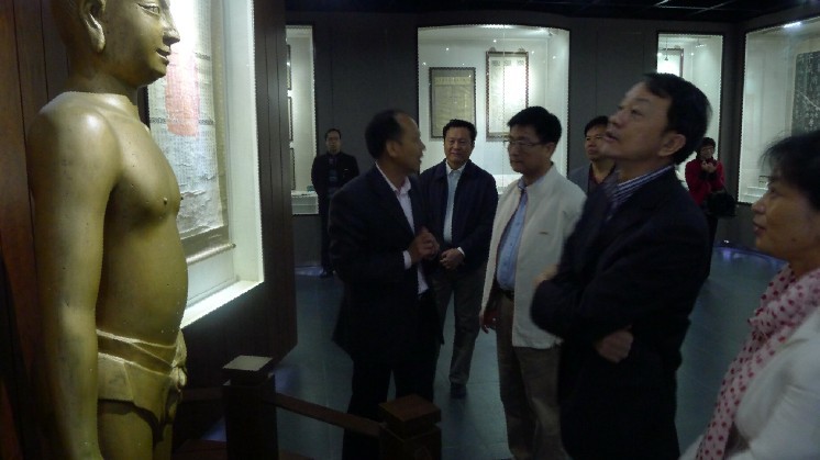 方健宏厅长一行首先仔细参观了博物馆,在每一件重要展品面前都详细了解其原来的用途和医学史的价值,并饶有兴趣地了解中医诊断、治疗等知识。参观完中药标本墙和中药馆展厅,方厅长发出了"叹为观止、出意料之外"的感叹。