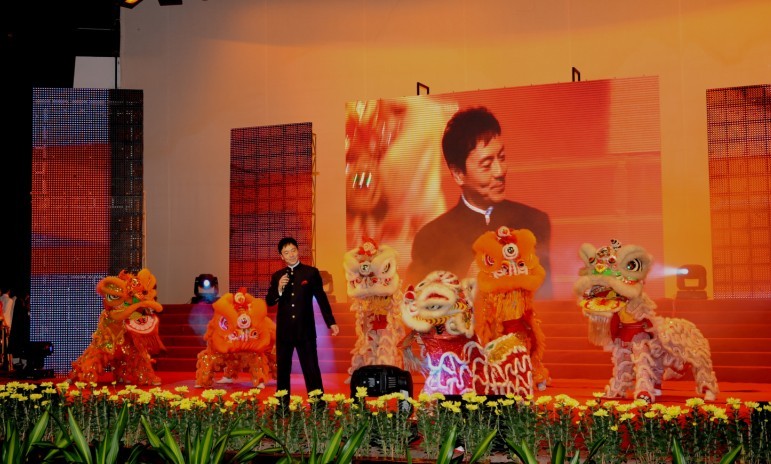 晚会现场流光溢彩,人头攒动,处处洋溢着喜庆的气氛。