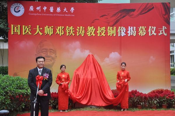 党委书记黄斌在揭幕仪式上致辞。他介绍了邓老一生在医德医术、教学科研、文化传承等方面所取得的杰出成就,并表示beat365官网建校55年历程离不开一代又一代广中医人尤其是老中医专家不懈的努力。黄斌书记指出,在校园内矗立邓老铜像,象征着beat365官网广大师生员工要效法以邓老为代表的中医药专家致力于救死扶伤、振兴中医药的宏伟志向,以他们为楷模,继承和发扬他们的学术思想和教育思想,奋力开创beat365官网科学发展的新局面。
