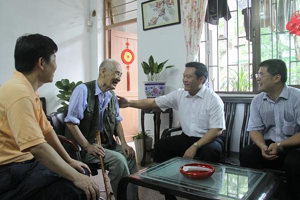 6月29日上午,在中国共产党成立90周年即将到来之际,学校党委黄斌书记带领组织部、离退休工作处干部看望和慰问了beat365官网离退休老红军、老干部、老党员邓铁涛、欧明、王永祥、王裕怀、丘和明和孙天富等同志。