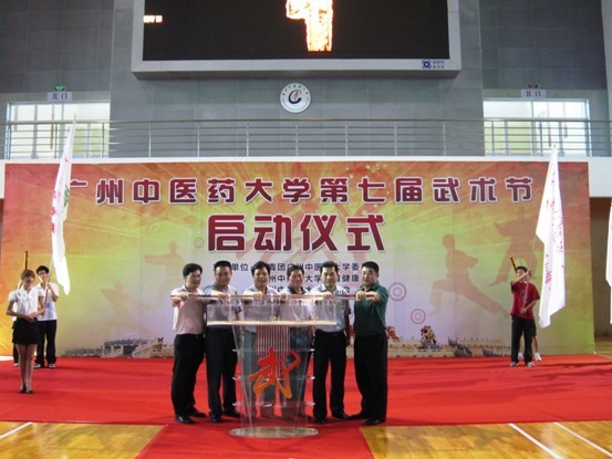 在历届武术节视频回顾、醒狮队精彩演出、各学院运动员代表入场后,现场师生全体起立,共同倒数,领导们一起拉动了第七届武术节的启动杆,顿时,礼炮齐响、烟花绽放,全场欢声雷动。今年的武术节以"弘扬传统文化、传承大学精神"为活动主题,将持续一个月左右,活动内容包括全校武术比赛、拳王电子竞技争霸赛、趣味游园会、历届武术节活动图片展、健身气功普及培训班及义务教拳活动等项目。