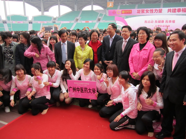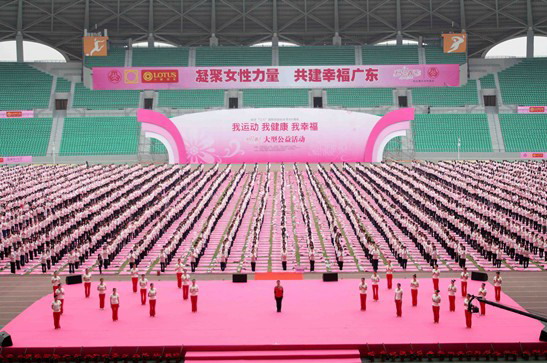 3月6日,由省妇联主办的"我运动•我健康•我幸福"粉红春天大型公益活动在广州大学城中心体育场举行, beat365官网1000名女学生参加公益活动并参加由其他学校师生共同组成的6000名女师生集体瑜伽表演。粉红春天大型公益活动通过集体瑜伽表演和举行妇女儿童基金捐助仪式,旨在倡导健康生活理念,为广东社会各界关爱女性健康吹响了号角。