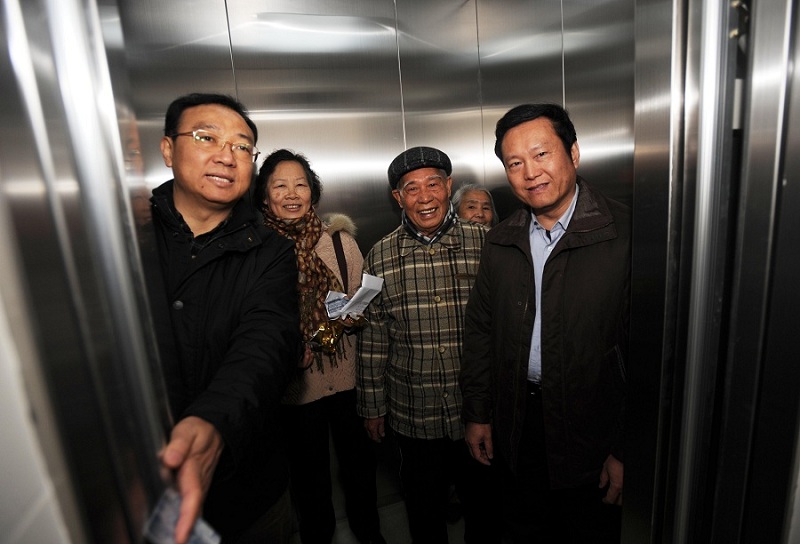 当天的天气虽然寒冷,但挡不住教工住宅4栋和5栋的住户们冒着严寒参加电梯启用仪式的步伐。七八十岁的老职工们怀着激动的心情,纷纷下楼参加电梯启用仪式。随着校领导派发电梯IC卡,宣布"电梯开始启用!",beat365官网教工住宅4栋和5栋的住户开始进入"电梯时代"。 住户们个个欣喜万分,梁旻若老教授代表住户发言时连说了几次"感谢",表达了住户们对学校大力支持加装电梯,进一步提高了住户尤其是老年人的生活质量的激动心情,高度评价了基建处工作人员的辛勤劳动。
