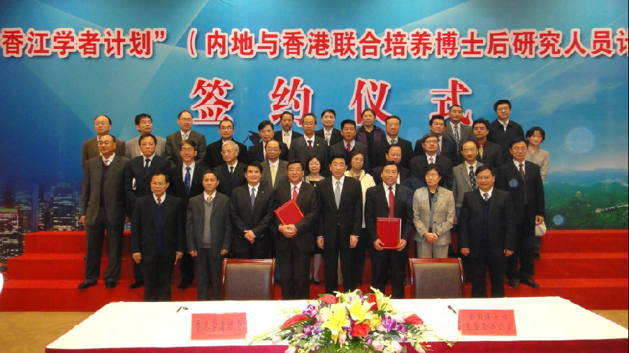 签约仪式由全国博士后科学基金会秘书长夏文峰主持,国家人力资源与社会保障部副部长、全国博士后管委会主任王晓初分别在会上作重要讲话,财政部、广东省人事厅、香港各著名大学校长等领导出席了会议。