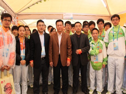 12月15日上午,校党委黄斌书记冒雨来到大学城铁人三项场馆,亲切慰问亚残运会的学生志愿者,并送去了慰问品。