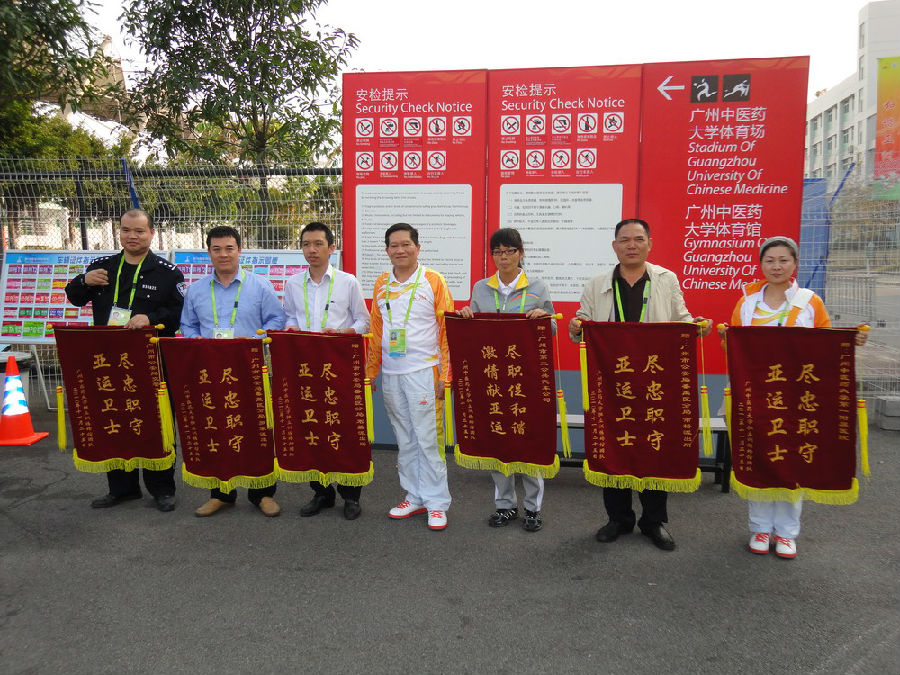 在安全保卫方面,按照大学城赛区安保工作的总体部署,认真执行安保政策,规范安检管理,全面落实防控措施,严把安检关口,确保了场馆的安全稳定,保证了各项工作的平稳运行,2010年11月10日至27日期间,对出入场馆人员进行防爆安检约4500多人次,出动安保警力约558人次。同时,不断巡查,严防火灾隐患,确保"平安亚运"。