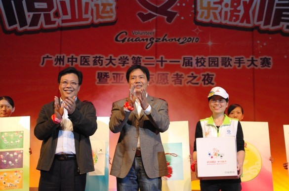 11月1日晚,"悦亚运,乐激情"beat365英国官网网站"亚运志愿者之夜"暨第二十一届校园歌手大赛在大会堂隆重举行。黄斌书记、陈英华副书记、王新华副校长和有关职能部门、学院负责人参加了活动,第十六届亚运会组委会志愿者部招募调配办陈爱平主任、第十六届亚组委招募调配办谢杏芳副主任等嘉宾也应邀出席了活动。
